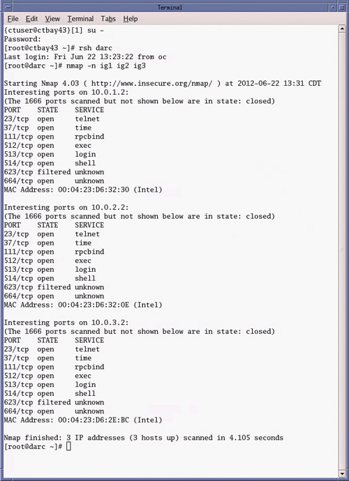 Figure 2. DARC Computer “nmap –n ig1 ig2 ig3” Command Output