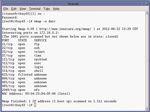 Type: [root@darc] nmap –n ig1 ig2 ig3 and press Enter.