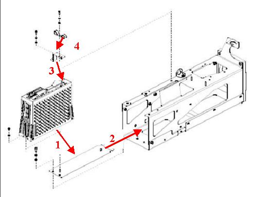 4. Mount two plastic cable guides to the top of the second bracket with an M4 screw, lock washer and flat washer each.