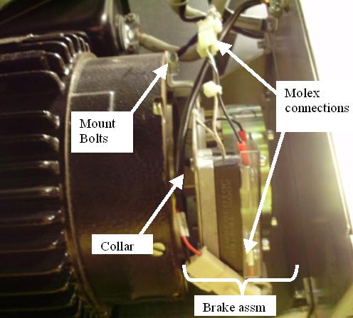 - Remove the 2 bolts that secure BRAKE motor to MOTOR.
