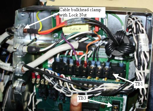 - Disconnect the 3 phase VAC power connections at TB1 R, S, T.