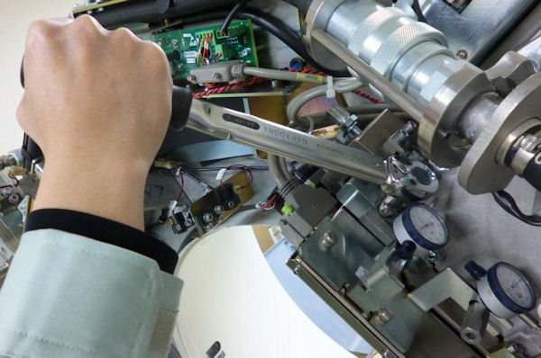 - Remove scan window, gantry left side cover, gantry top covers