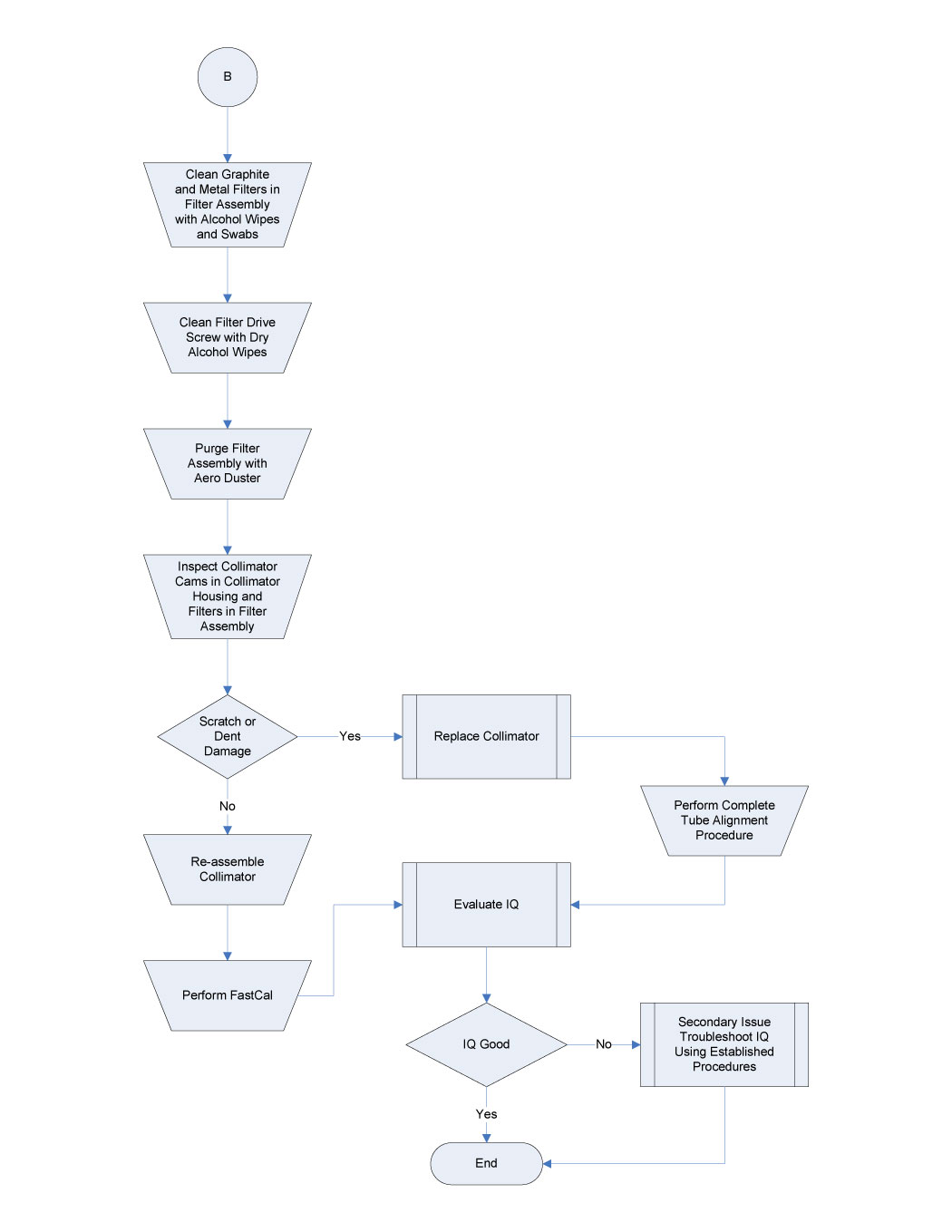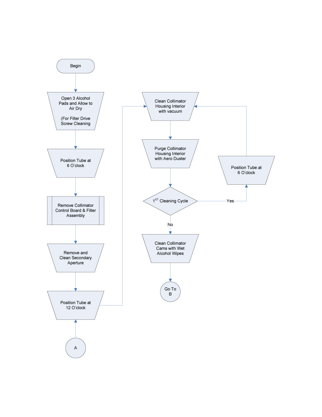 This procedure details the steps necessary to remove the contamination without removing the X-Ray Tube. The entire process will take approximately 3 hours. Tube/Collimator Alignments do not need to be performed. If you wish, you can check the alignments after completing the cleaning process. Any adjustments will require a complete Detailed Phantom Calibration.