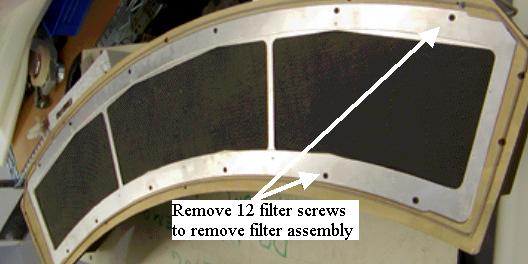 The filter assembly is attached to the rear of the plenum. The back side of the filter is an EMC screen that can be damaged if poked or hit. Be very careful with the new filter assembly.