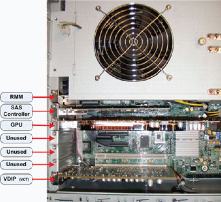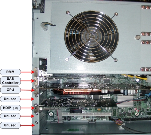 1. Install DIP Card into the slot shown above. See Figure 7 on fan power cable connection on HDIP cards