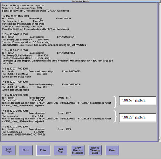 The following steps will demonstrate the capability of the PACS equipment to support a specific DICOM SOP class. The system has been already set to use “DICOM X-ray Radiation Dose SR SOP” class (Full) or “DICOM Enhanced SR SOP” class (On).