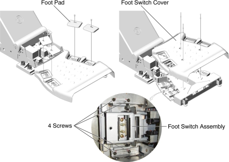 - Unscrew 4 screws holding the Foot Switch End Assy, and disconnect
