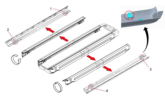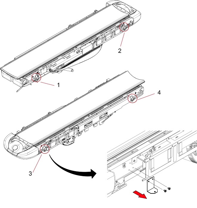 1 5822366: Top Cover Side Bracket LF 2 5814161: Top Cover Side Bracket LR 3 5814162: Top Cover Side Bracket RR 4 5814163: Top Cover Side Bracket RF - Secure each top side cover bracket by two (2) screws.