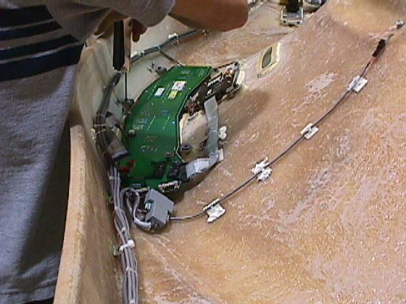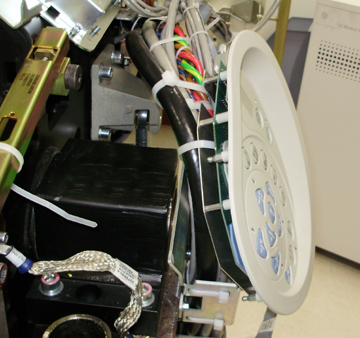- Disconnect the cabling at the right rear gantry cover. Only (1) cable will connect to the Gantry Display. Connect the cable taken from the rear cover to the display.