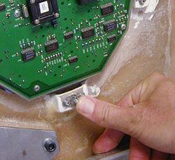 - Install Gantry Display in front cover. Secure the 5 thumbscrews. With a flat-blade screwdriver, gently tighten past finger-tight.