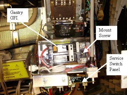 - Remove the gantry top cover for easier access to the GFI breaker.