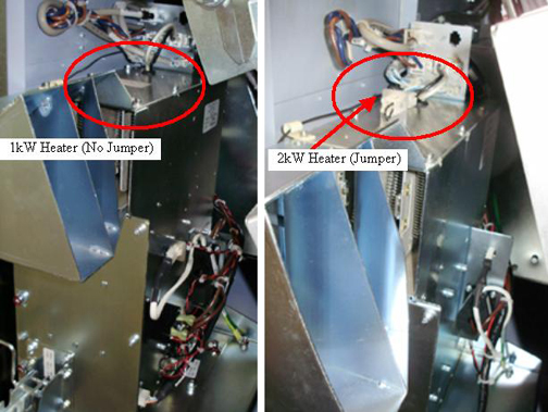 - For reference when ordering the heater assembly reference Figure 1. Note the 2 kW heater has a jumper on top and the