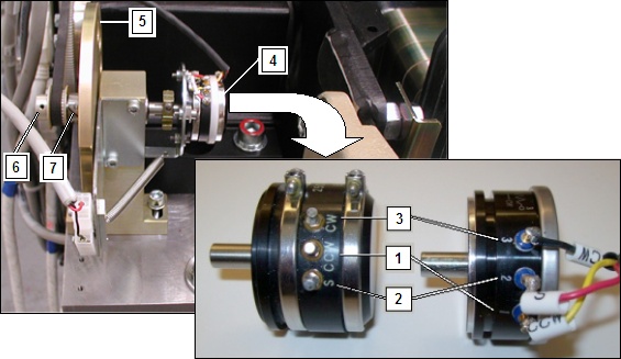 8. Refer to Figure 2. If the voltage reading is not correct, you will need to loosen the set screw for the 32 tooth pulley, which allows the pot shaft to be turned with out the pulley and belt connected [6].