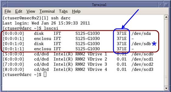 Type: {ctuser@darc}lsscsi , then press Enter.