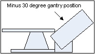 - Stand at the side of the gantry (clear of tilt motion) and use one of the operators control panels on the front of the gantry to tilt the gantry forward using the tilt feature to tilt the gantry to the -20 degree position for first time and stop.