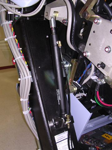 - While staying clear of the gantry (stand at its side), use one of the Operators control panels on the front of the gantry to resume tilting the gantry, exercising the new tilt hydraulic assembly completely through its full range of motion.