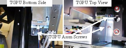 - Install the TGPU Assembly to the gantry frame. If any tie wraps were removed from the cables, re-install new ones. Attach any cables removed.