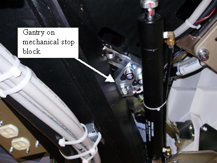 - If the Gantry is resting on its mechanical stops (all the way back), proceed with Step 2.