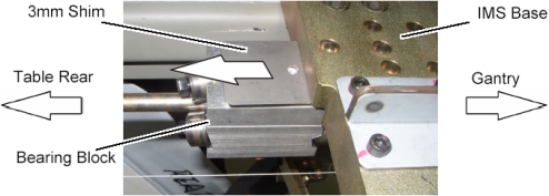 - Disengage the bearing blocks from the IMS base by unscrewing 2 screws, refer to IMS Bearing Block Replacement.