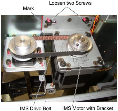 13. Adjust the belt tension according to IMS Belt Tension Adjustment.