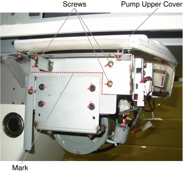 3. Remove six (6) screws holding the both sides of the pump upper cover, and remove it.