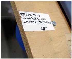 - Remove the two front cushions from the bottom of the skid (see Figure 3).