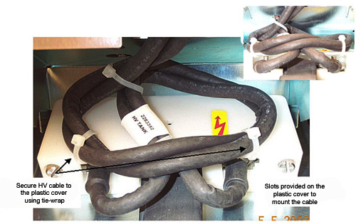 - Secure the HV cable to the plastic cover using tie wrap as shown