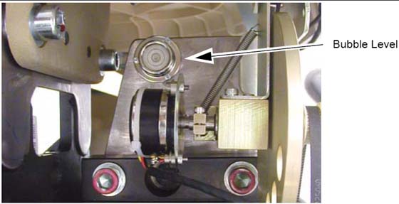The gantry uses two (2) bubble levels that are permanently mounted to machined surfaces on the stationary base to determine when it is level.