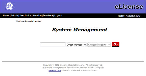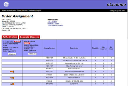 - Login to the eLicense web tool. (http://elicense.gehealthcare.com/elicense/)