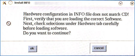 - When loading INFO file during application Software load, the following pop-up will appear.