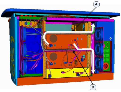 - Run the Power cables from the Monitors (Item A in the above Illustrations) to the Console’s Lower Rear Bulkhead