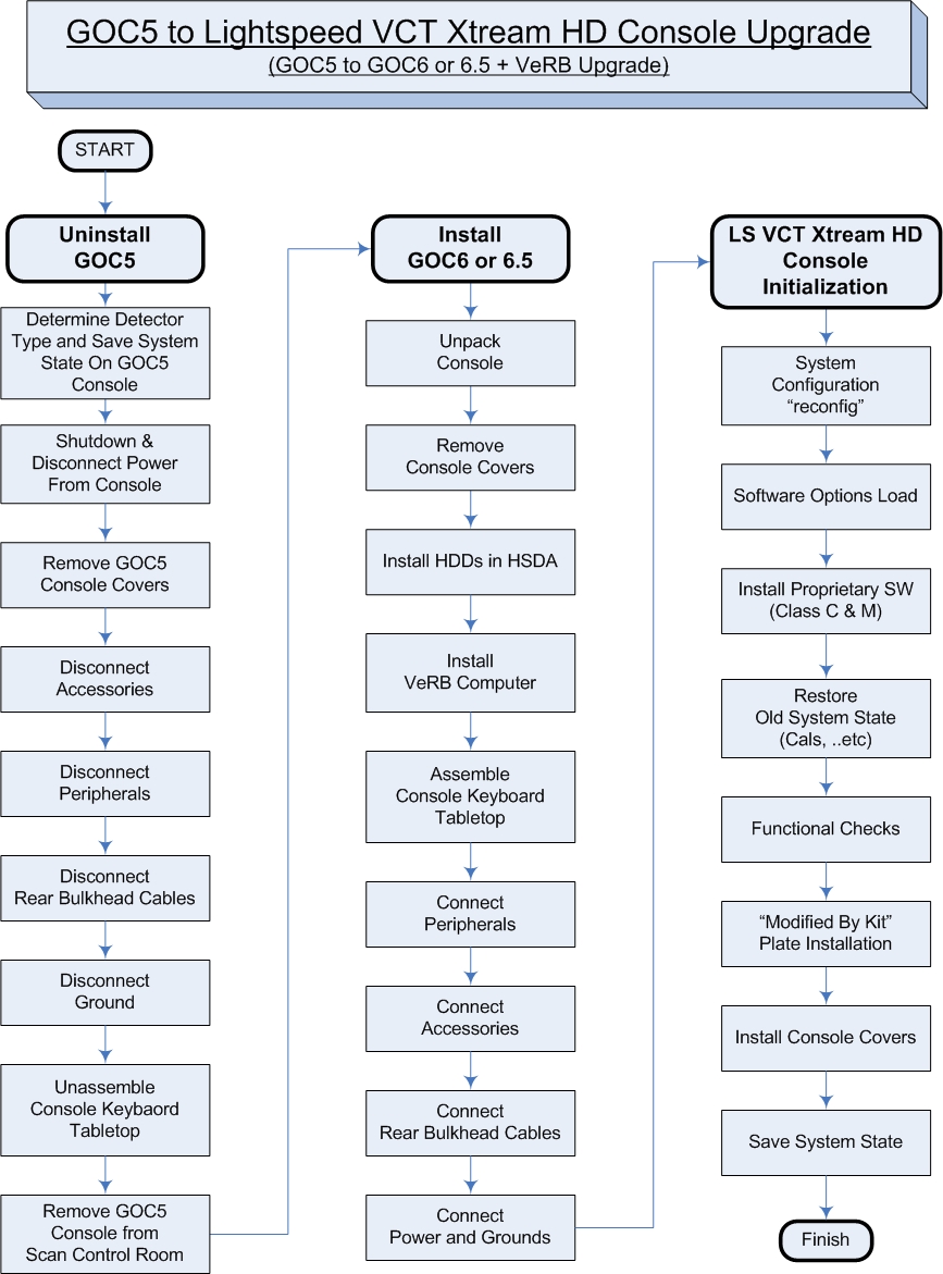 Figure 1. GOC5 to LightSpeed VCT Xtreme HD Console Upgrade (GOC5 to GOC6 Series + VeRB Upgrade) Flowchart