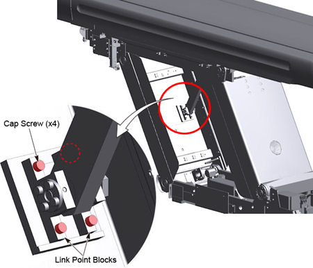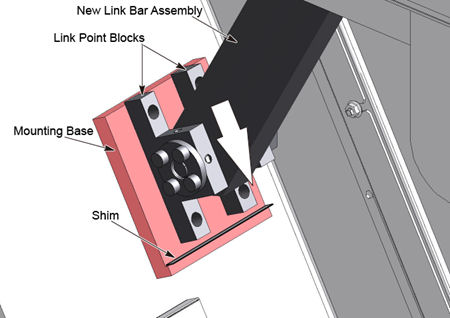 - Engage the new link bar assembly to the IMS base using the pin add link.