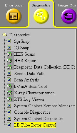 - Select Diagnostics tab and then LB Tube Rotor Control.