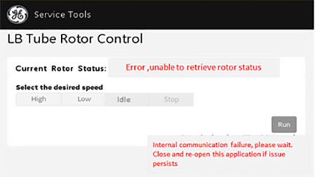 caution- To start the rotor, open the LB Tube Rotor Control Tool (rotor management tool), select Idle, and then Run. Monitor the tool for the update that states the rotor has reached speed.