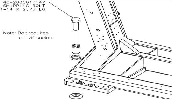 - Remove the four (4) gantry shipping bolts, using a 1½