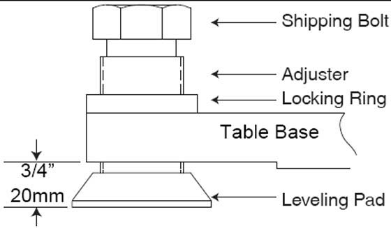 Figure 1. Table Base Leveling Pads (Starting Positions)