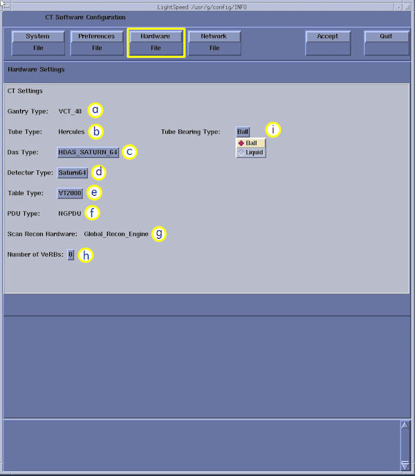 note:This screen provides the ability to declare the CT system on a hospital network. Key information such as Host Name, IP Address, Net Mask (for CT systems on a subnet) must be obtained from the hospital network administrator.