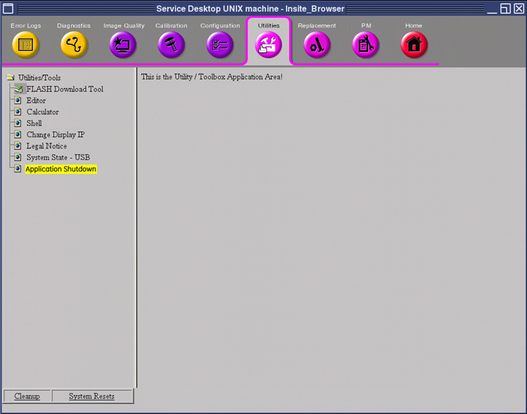 Figure 4. Service Desktop > Utilities tab – Application Shutdown