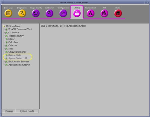 - Insert a previously saved System State DVD-RAM Media into the Peripheral Tower DVD-RAM Drive or USB Media in any of the console's USB ports