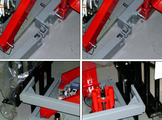 - Place all four Caster Towers back into their inside shipping position and pin them in place.