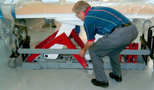 - Lower the Table to the floor and remove the Table from its shipping dolly. If necessary, refer to the system installation manual for details on how to remove the shipping dolly.