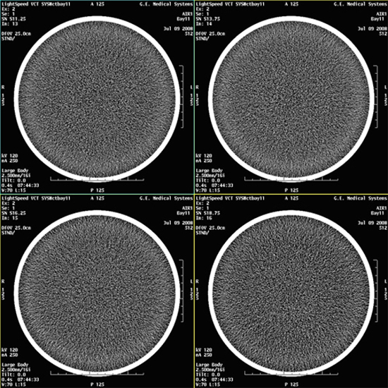 - Move table into gantry until axial internal alignment lights are aligned with phantom's axial reference mark.