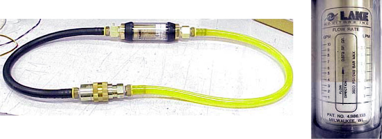 - Uncouple flow meter apparatus male quick disconnect from tube oil pump female quick disconnect.