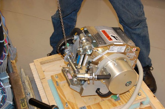 by hoist.note: Place Tube crate on floor so that Tube does not hit gantry or technician when lifted from Tube crate.