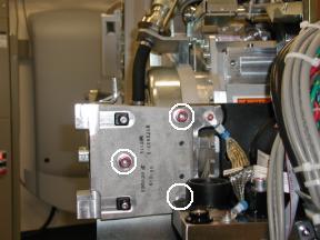 (See Figure 1) with 10mm hex bit socket drive and 12 inch extension.note: It may be necessary to tilt the gantry back to remove the third bolt (not normally installed).