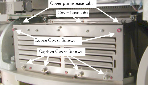 - Remove the DIFB chassis covers and discard them. See Figure 5 for screw locations and cover release pins.