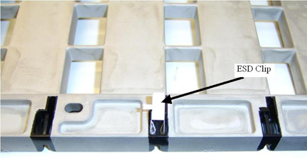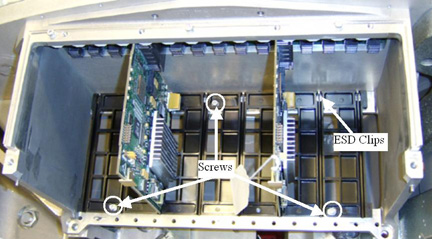 - Carefully install the Card guide ESD clips on the bottom side