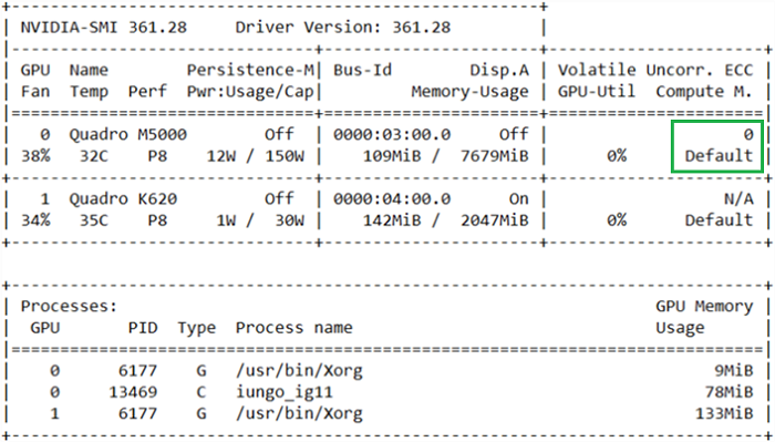 • If the GPU ECC is ON, below is what the output would look like(boxed in green, figure is an example):