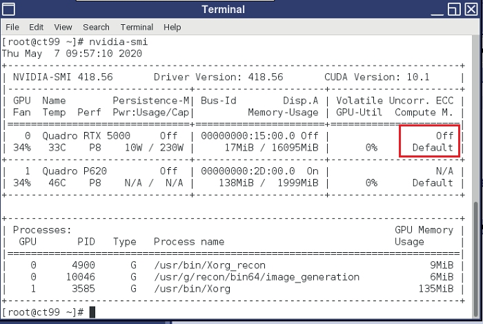 - If the GPU ECC is OFF, below is what the output would look like (boxed in red):